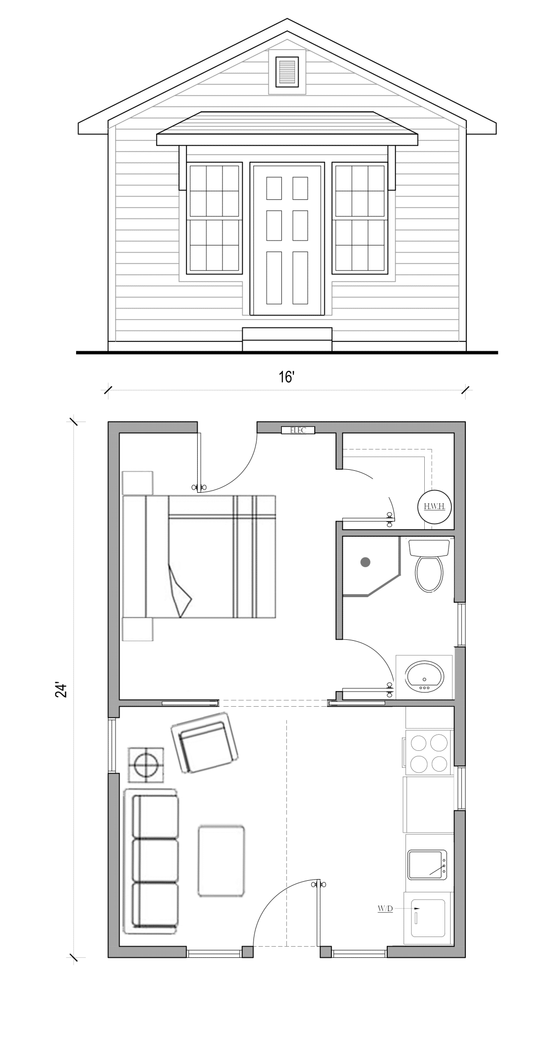 Dimensions: 16’ W X 24’-8” L
